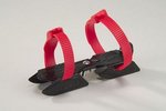 Verstelbaar d.m.v. vleugelmoer aan onderzijde van de schaats, verbeterd/versterkt model, incl. 3 stevige popnagels door de verstelbrug, met wreefband.